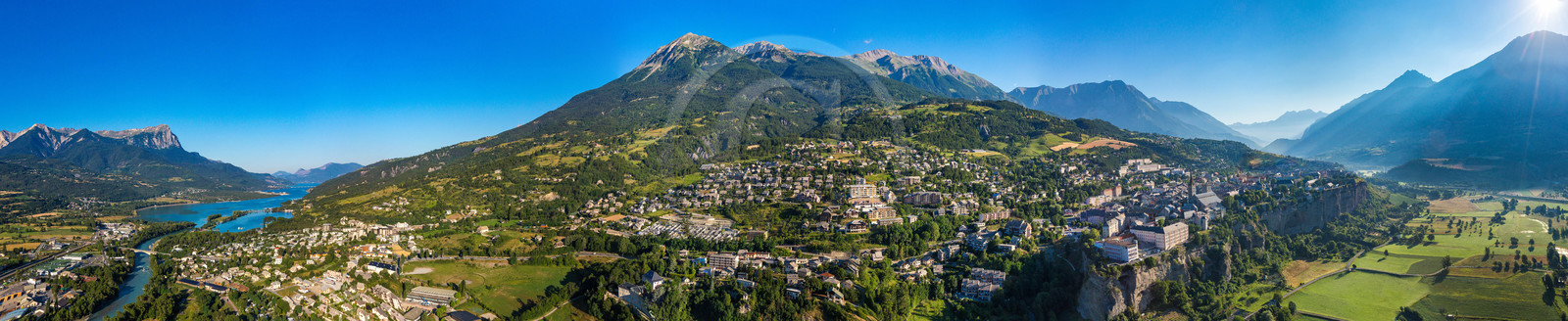 | Description | Hautes-Alpes (05), La ville d'Embrun est construite sur un roc et domine la Durance, elle est la ville la plus ensoleillée des Alpes |