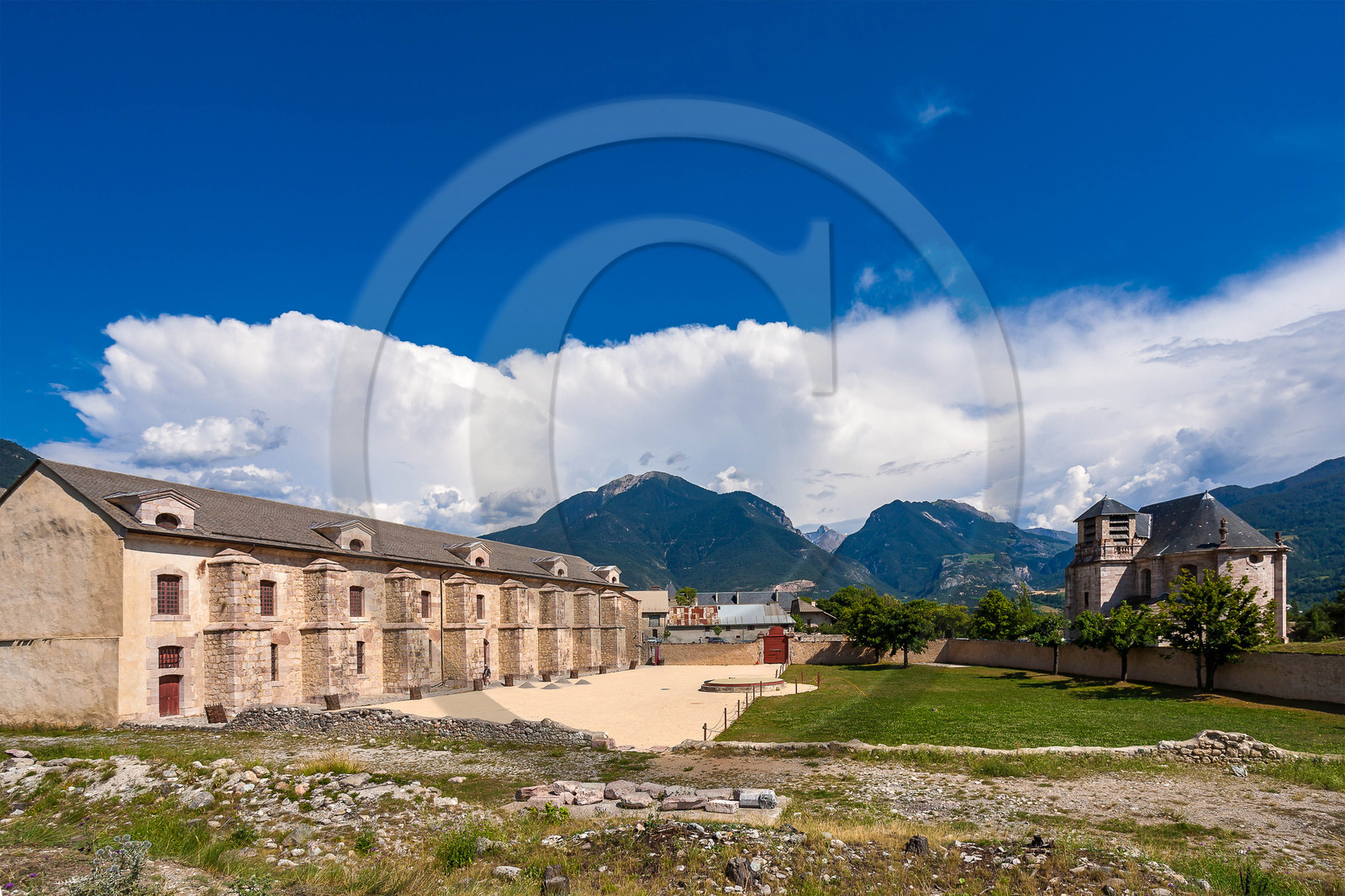 | Description | Hautes-Alpes (05), Guillestrois Queyras, vallée de la Durance, confluence du Guil et la Durance, Mont-Dauphin, village fortifié, la place forte de Mont-Dauphin construite par Vauban à partir de 1693 fait partie des 12 sites majeurs Vauban inscrits en 2008 au Patrimoine mondial de l'UNESCO, l'arsenal et l'église |