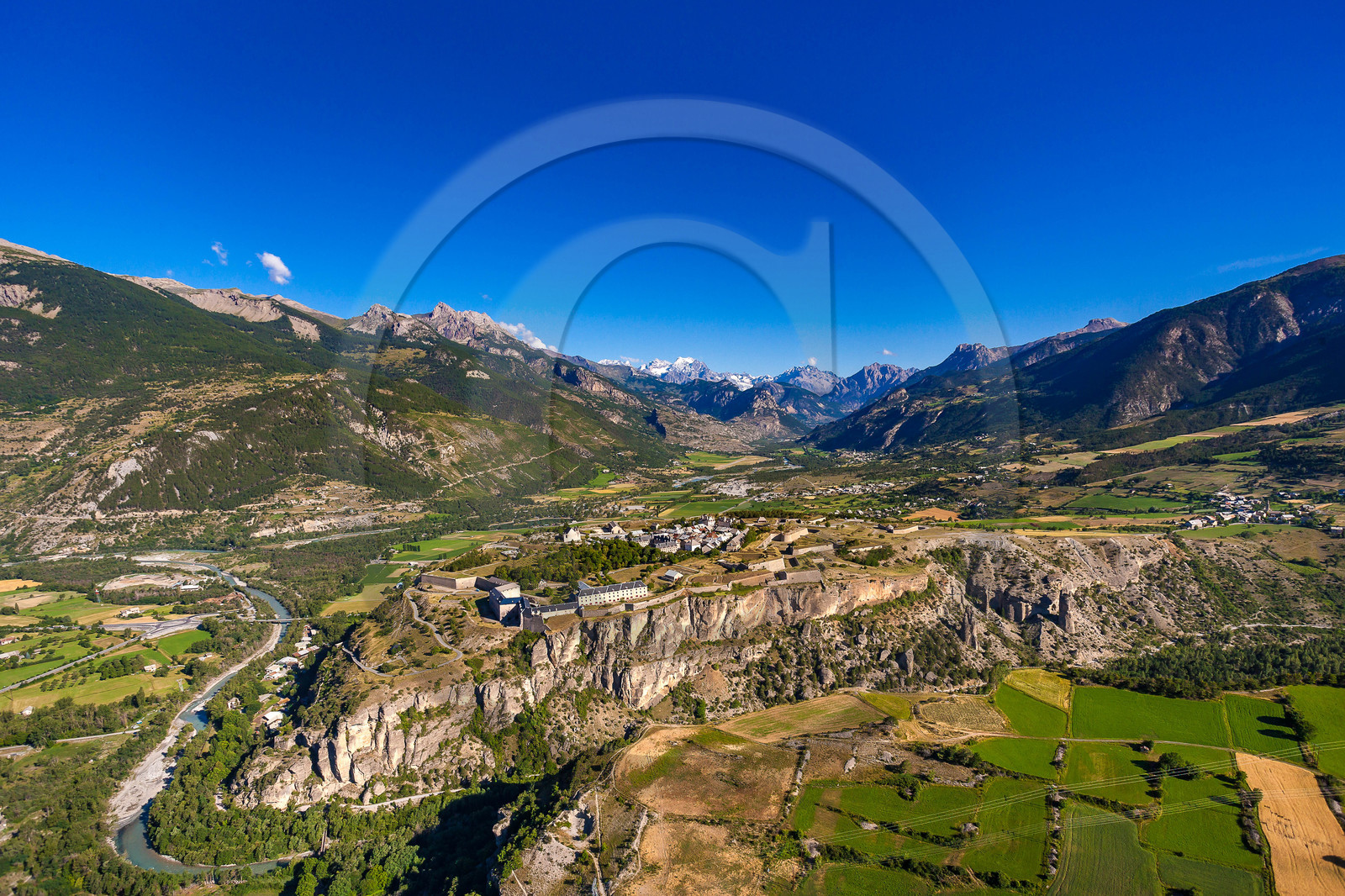 | Description | Hautes-Alpes (05), Guillestrois Queyras, vallée de la Durance, confluence du Guil et la Durance, Eygliers, Mont-Dauphin, village fortifié, la place forte de Mont-Dauphin construite par Vauban à partir de 1693 fait partie des 12 sites majeurs Vauban inscrits en 2008 au Patrimoine mondial de l'UNESCO, au fond, le massif des Ecrins et le Pelvoux |
