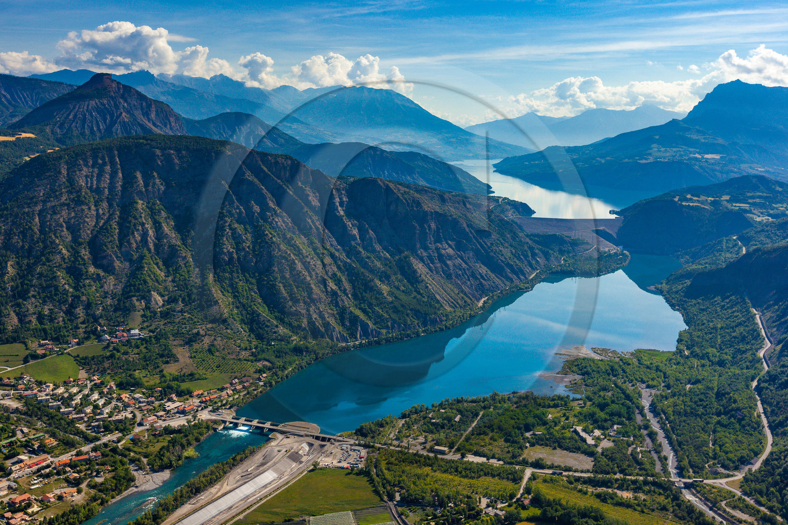 | Description | Hautes-Alpes, 05, Lac de Serre-Ponçon, Espinasses, Le Barrage et le bassin de compensation |
