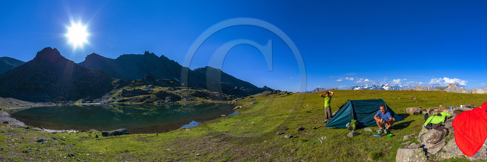 | Description | Hautes-Alpes (05), Briançonnais, Vallée de la Clarée, site naturel classé, Névache, Bivouac aux Lacs des Gardioles |