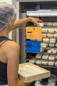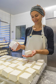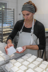 • Isère (38), massif de l'Oisans, vallée de la Lignarre, Parc national des Ecrins, Ornon, Bergerie de la Lignarre, Emilie Salvi et Jimmy Haussler, éleveurs de brebis laitières et producteurs de fromages frais et affinés, yaourts et fromages blancs et de viande d’agneau, fabrication des fromages // Isère (38), Oisans massif, Lignarre valley, Ecrins national park, Ornon, Bergerie de la Lignarre, Emilie Salvi and Jimmy Haussler, dairy sheep breeders and producers of fresh and matured cheeses, yogurts, white cheeses and lamb meat