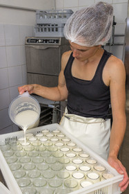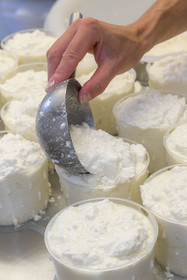 • Isère (38), massif de l'Oisans, vallée de la Lignarre, Parc national des Ecrins, Ornon, Bergerie de la Lignarre, Emilie Salvi et Jimmy Haussler, éleveurs de brebis laitières et producteurs de fromages frais et affinés, yaourts et fromages blancs et de viande d’agneau, fabrication des yaourts // Isère (38), Oisans massif, Lignarre valley, Ecrins national park, Ornon, Bergerie de la Lignarre, Emilie Salvi and Jimmy Haussler, dairy sheep breeders and producers of fresh and matured cheeses, yogurts, white cheeses and lamb meat
