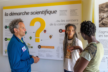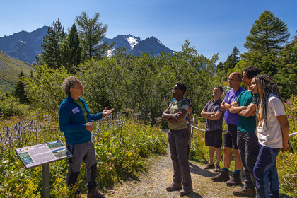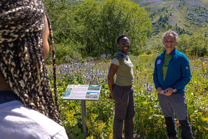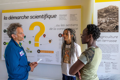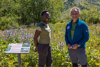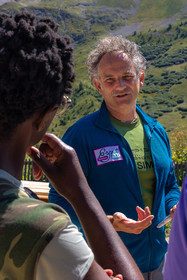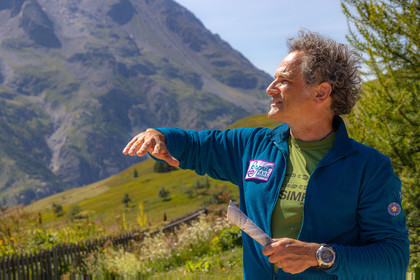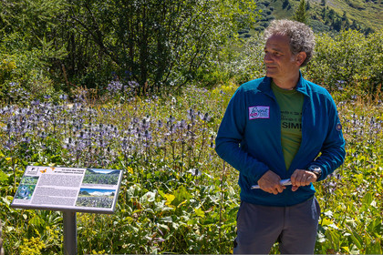 • Hautes-Alpes (05), Parc national des Ecrins, Haute vallée de la Romanche, randonnée en itinérance avec Olivier Bello, accompagnateur en moyenne montagne, randonnée itinérante des 'Refuges Sentinelles', quand randonnée et plaisir des sciences se conjuguent, découverte du Jardin Alpin du col du Lautaret // Hautes-Alpes (05), Ecrins National Park, Romanche valley, roaming hike with Olivier Bello, mid-mountain guide, itinerant hike of the 'Sentinel Refuges', when hiking and the pleasure of science combine