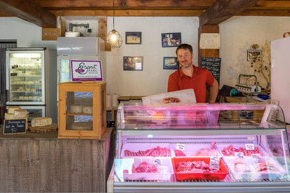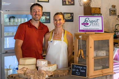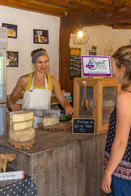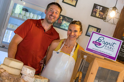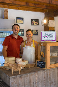 • Isère (38), massif de l'Oisans, vallée de la Lignarre, Parc national des Ecrins, Ornon, Bergerie de la Lignarre, Emilie Salvi et Jimmy Haussler, éleveurs de brebis laitières et producteurs de fromages frais et affinés, yaourts et fromages blancs et de viande d’agneau, magasin de vente // Isère (38), Oisans massif, Lignarre valley, Ecrins national park, Ornon, Bergerie de la Lignarre, Emilie Salvi and Jimmy Haussler, dairy sheep breeders and producers of fresh and matured cheeses, yogurts, white cheeses and lamb meat