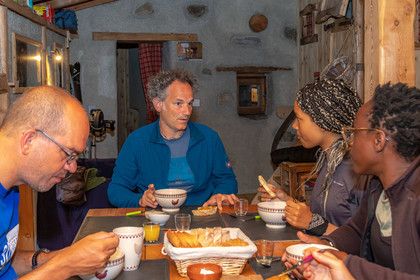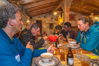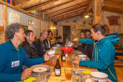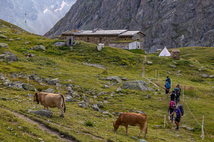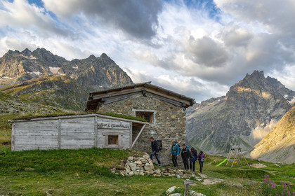• Hautes-Alpes (05), Parc national des Ecrins, Haute vallée de la Romanche, randonnée en itinérance avec Olivier Bello, accompagnateur en moyenne montagne, randonnée itinérante des 'Refuges Sentinelles', quand randonnée et plaisir des sciences se conjuguent, Chalet Refuge de Chamoissière // Hautes-Alpes (05), Ecrins National Park, Romanche valley, roaming hike with Olivier Bello, mid-mountain guide, itinerant hike of the 'Sentinel Refuges', when hiking and the pleasure of science combine, Chalet Refuge of Chamoissière, Refuge de l'Alpe de Villar d'Arène