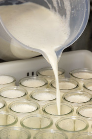 • Isère (38), massif de l'Oisans, vallée de la Lignarre, Parc national des Ecrins, Ornon, Bergerie de la Lignarre, Emilie Salvi et Jimmy Haussler, éleveurs de brebis laitières et producteurs de fromages frais et affinés, yaourts et fromages blancs et de viande d’agneau, fabrication des yaourts // Isère (38), Oisans massif, Lignarre valley, Ecrins national park, Ornon, Bergerie de la Lignarre, Emilie Salvi and Jimmy Haussler, dairy sheep breeders and producers of fresh and matured cheeses, yogurts, white cheeses and lamb meat