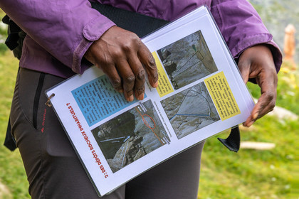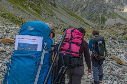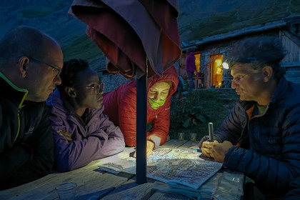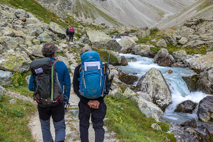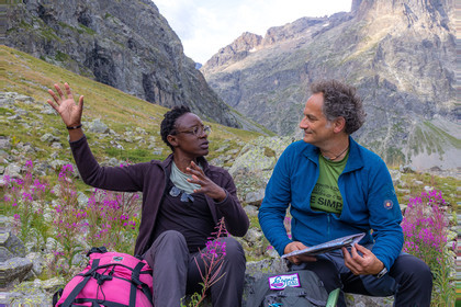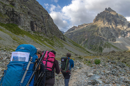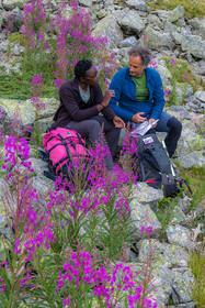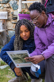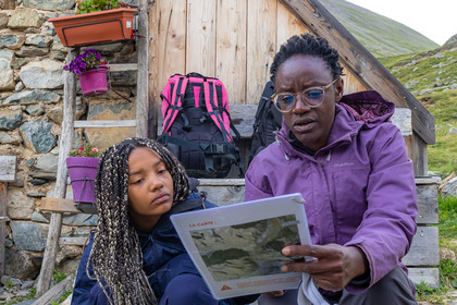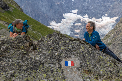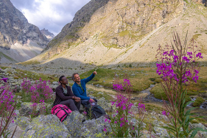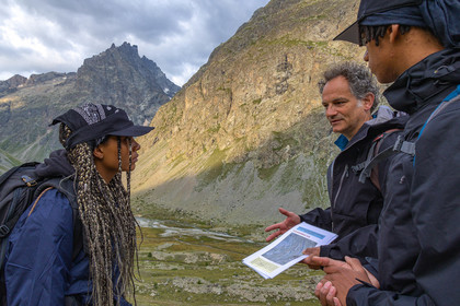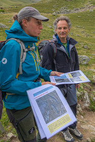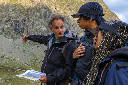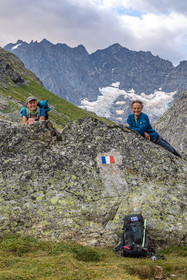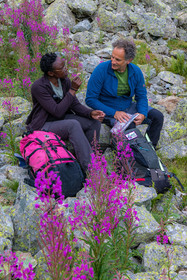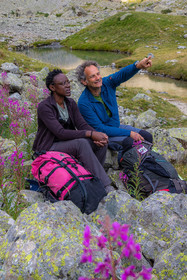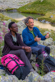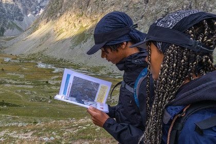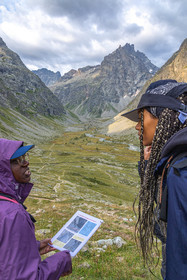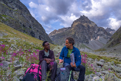 • Hautes-Alpes (05), Parc national des Ecrins, Haute vallée de la Romanche, rValfourche,andonnée en itinérance avec Olivier Bello, accompagnateur en moyenne montagne, randonnée itinérante des 'Refuges Sentinelles', quand randonnée et plaisir des sciences se conjuguent, sciences de la montagne et les glaciers avec avec Laétitia Genitoni, Educatrice sportive spécialité outdoors et sport adapté, Animatrice scientifique et accompagnatrice en moyenne montagne // Hautes-Alpes (05), Ecrins National Park, Romanche valley, roaming hike with Olivier Bello, mid-mountain guide, itinerant hike of the 'Sentinel Refuges', when hiking and the pleasure of science combine