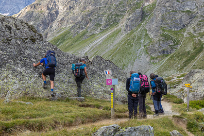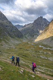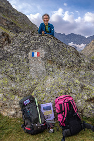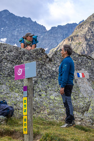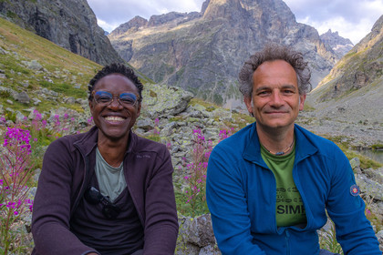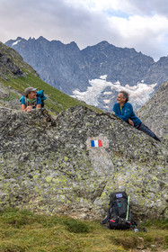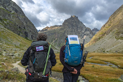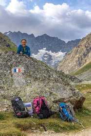 • Hautes-Alpes (05), Parc national des Ecrins, Haute vallée de la Romanche, randonnée en itinérance avec Olivier Bello, accompagnateur en moyenne montagne, randonnée itinérante des 'Refuges Sentinelles', quand randonnée et plaisir des sciences se conjuguent, Béatrice Blondiau sophrologue // Hautes-Alpes (05), Ecrins National Park, Romanche valley, roaming hike with Olivier Bello, mid-mountain guide, itinerant hike of the 'Sentinel Refuges', when hiking and the pleasure of science combine