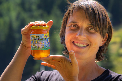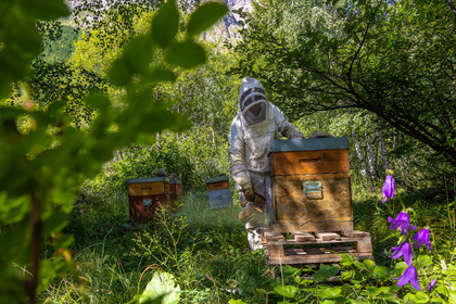 • Hautes-Alpes (05), Parc national des Ecrins, Le Monêtier-les-Bains, Le Lauzet, Les cueillettes du Lauzet, La miellerie du Lauzet, Florence Garambois, apicultrice // Hautes-Alpes (05), Ecrins National Park, Le Monêtier-les-Bains, Le Lauzet, The pickings of Lauzet, La miellerie du Lauzet, Florence Garambois, beekeeper