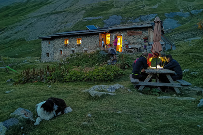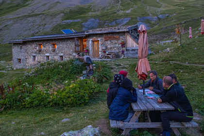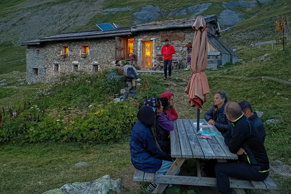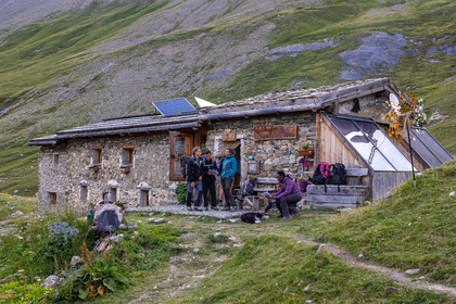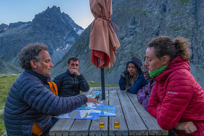 • Hautes-Alpes (05), Parc national des Ecrins, Haute vallée de la Romanche, randonnée en itinérance avec Olivier Bello, accompagnateur en moyenne montagne, randonnée itinérante des 'Refuges Sentinelles', quand randonnée et plaisir des sciences se conjuguent, Chalet Refuge de Chamoissière // Hautes-Alpes (05), Ecrins National Park, Romanche valley, roaming hike with Olivier Bello, mid-mountain guide, itinerant hike of the 'Sentinel Refuges', when hiking and the pleasure of science combine, Chalet Refuge of Chamoissière