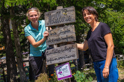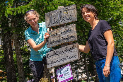 • Hautes-Alpes (05), Parc national des Ecrins, Le Monêtier-les-Bains, Le Lauzet, Les cueillettes du Lauzet, Stéphanie Gude cultivatrice de petits fruits et de plantes à épices, aromatiques et Florence Garambois, apicultrice // Hautes-Alpes (05), Ecrins National Park, Le Monêtier-les-Bains, Le Lauzet, Les cueillettes du Lauzet, Stéphanie Gude cultivator of berries and spice and aromatic plants and Florence Garambois, beekeeper