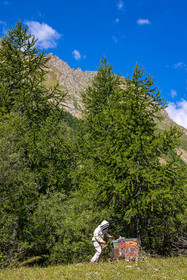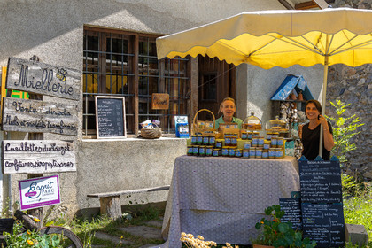 • Hautes-Alpes (05), Parc national des Ecrins, Le Monêtier-les-Bains, Le Lauzet, Les cueillettes du Lauzet, La miellerie du Lauzet, Florence Garambois, apicultrice, miel de haute montagne // Hautes-Alpes (05), Ecrins National Park, Le Monêtier-les-Bains, Le Lauzet, The pickings of Lauzet, La miellerie du Lauzet, Florence Garambois, beekeeper