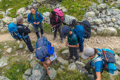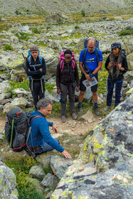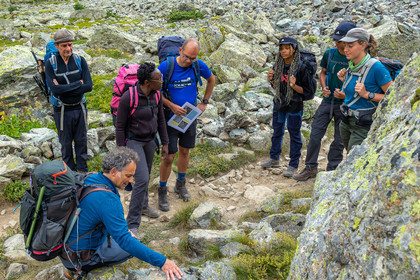 • Hautes-Alpes (05), Parc national des Ecrins, Haute vallée de la Romanche, randonnée en itinérance avec Olivier Bello, accompagnateur en moyenne montagne, randonnée itinérante des 'Refuges Sentinelles', quand randonnée et plaisir des sciences se conjuguent // Hautes-Alpes (05), Ecrins National Park, Romanche valley, roaming hike with Olivier Bello, mid-mountain guide, itinerant hike of the 'Sentinel Refuges', when hiking and the pleasure of science combine