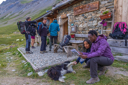 • Hautes-Alpes (05), Parc national des Ecrins, Haute vallée de la Romanche, randonnée en itinérance avec Olivier Bello, accompagnateur en moyenne montagne, randonnée itinérante des 'Refuges Sentinelles', quand randonnée et plaisir des sciences se conjuguent, Chalet Refuge de Chamoissière et Laétitia Genitoni, // Hautes-Alpes (05), Ecrins National Park, Romanche valley, roaming hike with Olivier Bello, mid-mountain guide, itinerant hike of the 'Sentinel Refuges', when hiking and the pleasure of science combine, Chalet Refuge of Chamoissière