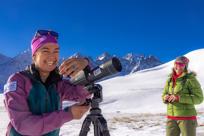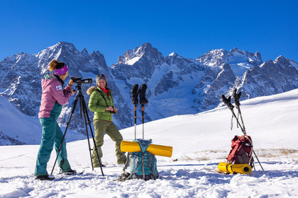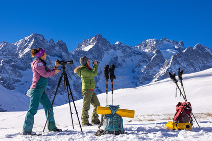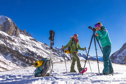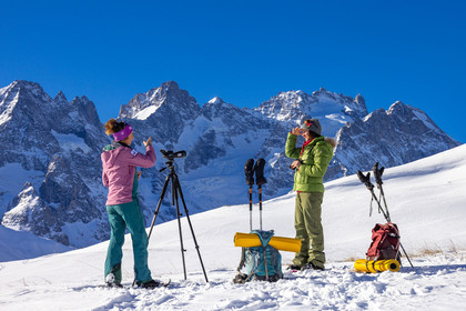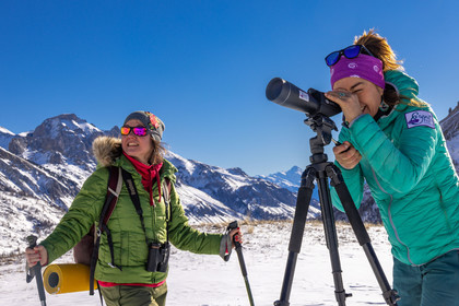 • Hautes-Alpes (05), Parc national des Ecrins, Esprit Parc national, vallée de la Guisanne, Serre Chevalier, Randozen Serre Chevalier, Rachel Bourg accompagnatrice en moyenne montagne, rando en montagne en raquettes à neige, yoga, méditation, marche consciente, sylvothérapie, observation de la faune à la longue vue // Hautes-Alpes (05), Ecrins National Park, Esprit National Park, Guisanne Valley, Serre Chevalier, Randozen Serre Chevalier, Rachel Bourg mountain guide, mountain hiking on snowshoes, yoga, meditation, mindful walking, forest therapy