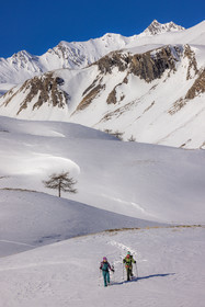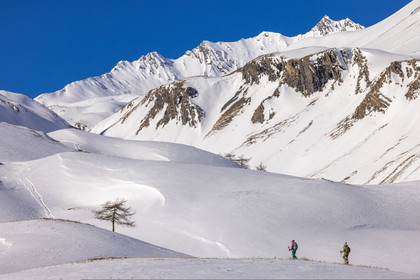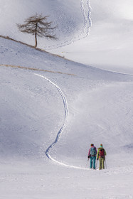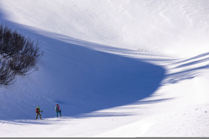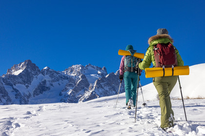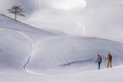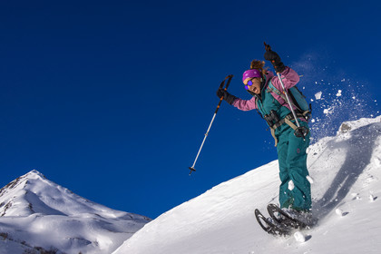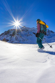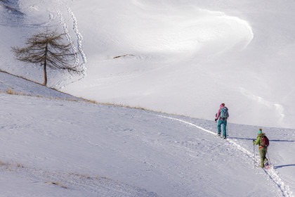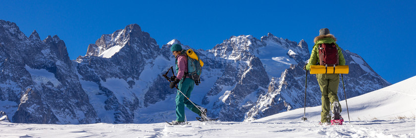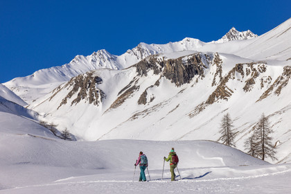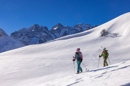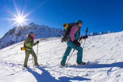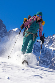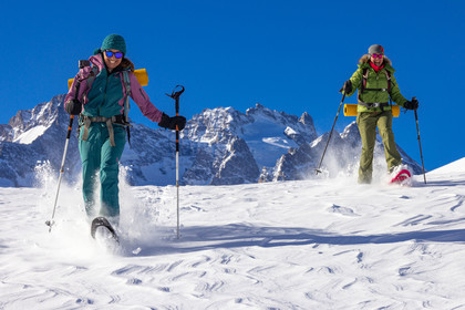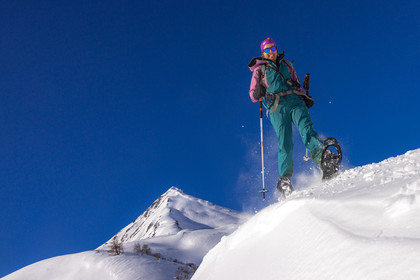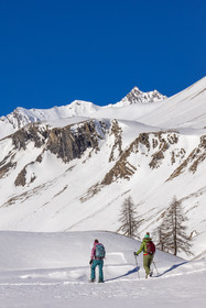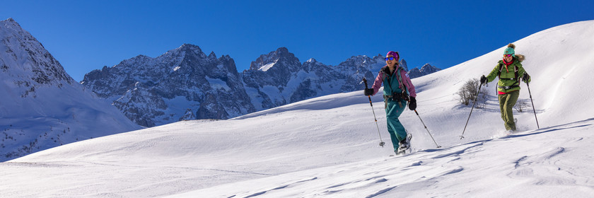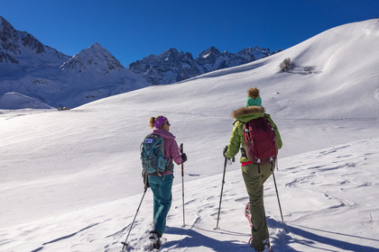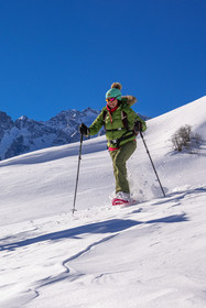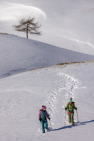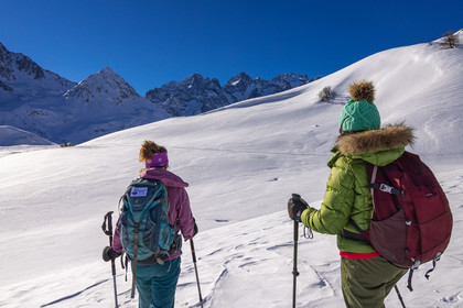 • Hautes-Alpes (05), Parc national des Ecrins, Esprit Parc national, vallée de la Guisanne, Serre Chevalier, Randozen Serre Chevalier, Rachel Bourg accompagnatrice en moyenne montagne, rando en montagne en raquettes à neige // Hautes-Alpes (05), Ecrins National Park, Esprit National Park, Guisanne Valley, Serre Chevalier, Randozen Serre Chevalier, Rachel Bourg mountain guide, mountain hiking on snowshoes, yoga, meditation, mindful walking, forest therapy