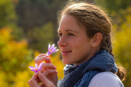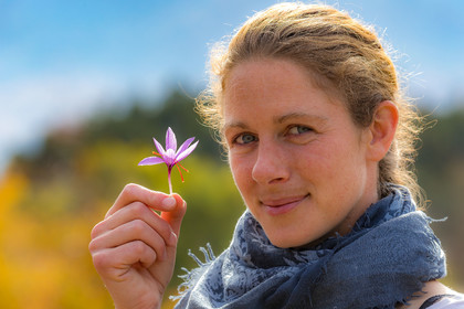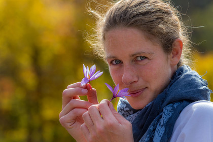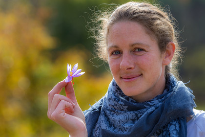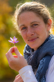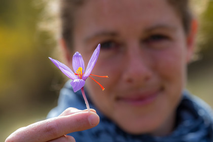 • Hautes-Alpes (05), Parc national des Ecrins, Vallée du Champsaur, Orcières, Melissa Bertrand-Pelisson, cultivatrice de plantes à épices, safranière // Hautes-Alpes (05), Ecrins national park, Champsaur valley, Orcières, Melissa Bertrand-Pellisson, spice plant cultivator saffron
