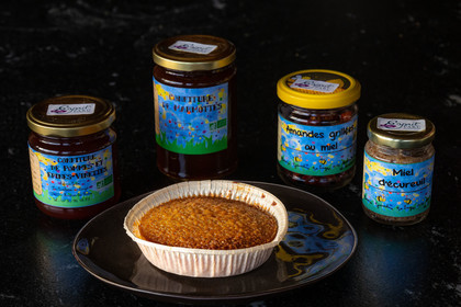 • Hautes-Alpes (05), Parc national des Ecrins, Le Monêtier-les-Bains, Le Lauzet, Les cueillettes du Lauzet, Stéphanie Gude cultivatrice de petits fruits et de plantes à épices, aromatiques et Florence Garambois, apicultrice, tartelette au miel // Hautes-Alpes (05), Ecrins National Park, Le Monêtier-les-Bains, Le Lauzet, Les cueillettes du Lauzet, Stéphanie Gude cultivator of berries and spice and aromatic plants and Florence Garambois, beekeeper