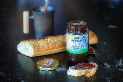 • Hautes-Alpes (05), Parc national des Ecrins, Le Monêtier-les-Bains, Le Lauzet, Les cueillettes du Lauzet, Stéphanie Gude propose des confitures et gelées de petits fruits, des mélanges de plantes séchées à utiliser en infusion ou en cuisine, ainsi que des brins de génépi blanc cultivé, confiture de marmottes // Hautes-Alpes (05), Ecrins National Park, Le Monêtier-les-Bains, Le Lauzet, Les cueillettes du Lauzet, Stéphanie Gude offers berry jams and jellies, mixtures of dried plants to use in infusion or in cooking , as well as strands of cultivated white genepi, marmottes marmelade