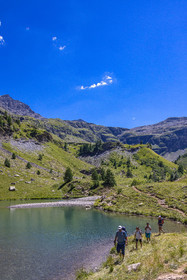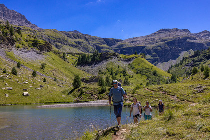 • Hautes-Alpes (05), Parc national des Ecrins, vallée de Freissinières, Alexandre Puech, accompagnateur en moyenne montagne, randonnée pédestre en famille, Lac de Fangeas // Hautes-Alpes (05), Ecrins National Park, Freissinières Valley, Alexandre Puech, mid-mountain guide, family hiking, Fangeas lake