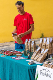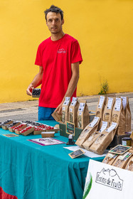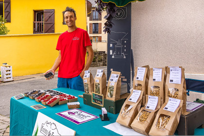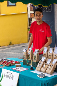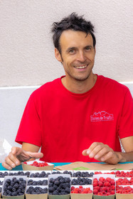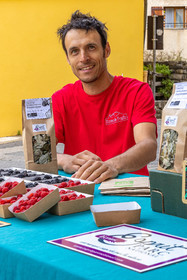• Hautes-Alpes (05), Parc national des Ecrins, Vallée du Champsaur, marché de producteurs de Saint-Bonnet-en-Champsaur, Ecrins de fruits, Antoine Spina producteur en agriculture biologique de fruits rouges // Hautes-Alpes (05), Champsaur Valley, Saint-Bonnet-en-Champsaur, Pisançon, Ecrins de fruits, organic producer of red fruits