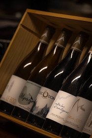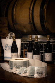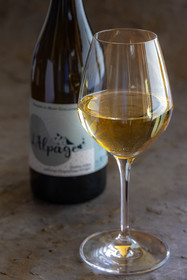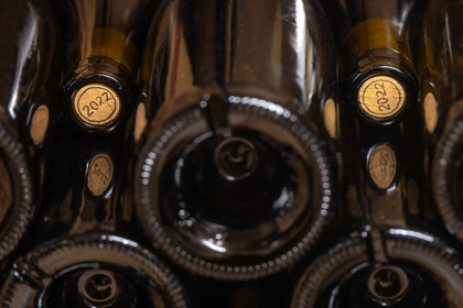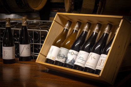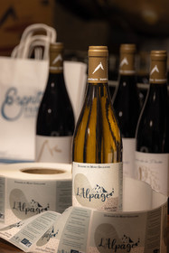• Hautes-Alpes (05), Parc national des Ecrins, Pays de Serre-Ponçon, Embrun, Domaine du Mont Guillaume, Delphine et Emmanuel Berteloot vignerons, bouteilles des vins de 2022 // Hautes-Alpes (05), Ecrins National Park, Pays de Serre-Ponçon, Embrun, Domaine du Mont Guillaume, Delphine and Emmanuel Berteloot winegrowers, mollard harvest, an endemic grape variety of the Hautes Alpes