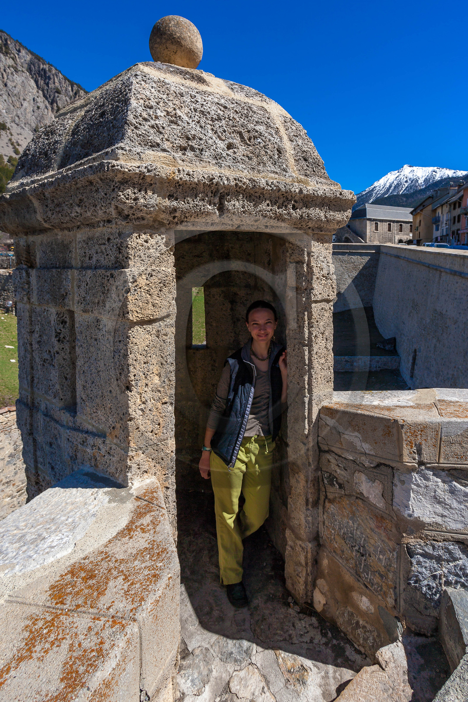 | Description | Hautes-Alpes (05), Serre Chevalier Vallée Briançon, 1350m d'altitude, ville d'Art et d'Histoire fortifiée par Vauban, les fortifications de Vauban sont inscrites sur la liste du patrimoine mondial de l'UNESCO, échauguette |