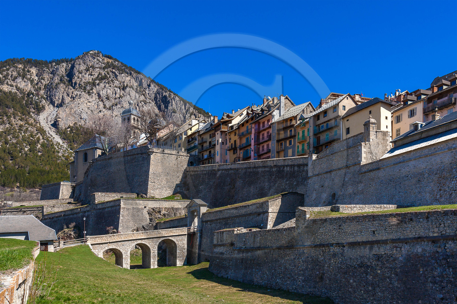 | Description | Hautes-Alpes (05), Serre Chevalier Vallée Briançon, 1350m d'altitude, ville d'Art et d'Histoire fortifiée par Vauban, les fortifications de Vauban sont inscrites sur la liste du patrimoine mondial de l'UNESCO, porte d'Embrun |