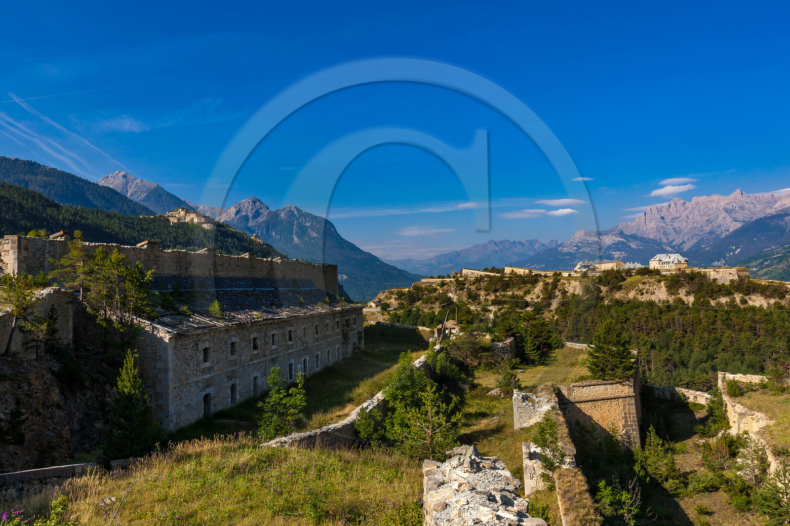 | Description | Hautes-Alpes (05), Serre Chevalier Vallée Briançon, 1350m d'altitude, ville d'Art et d'Histoire fortifiée par Vauban, les fortifications de Vauban sont inscrites sur la liste du patrimoine mondial de l'UNESCO, Briançon, Fort Dauphin et derrière, le Fort du Randouillet, le Fort des Têtes |