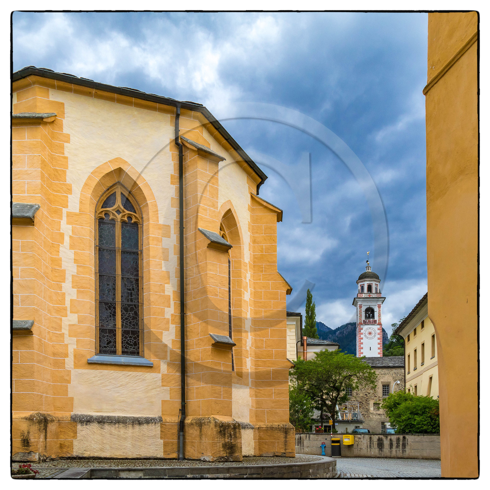 | Description | Suisse, canton des Grisons, Chemins de fer rhétiques, traversée des Alpes à bord du Bernina Express, itinéraire inscrit au patrimoine mondial de l'UNESCO, Poschiavo, un des Plus Beaux Villages de Suisse, collégiale de Saint Victor |