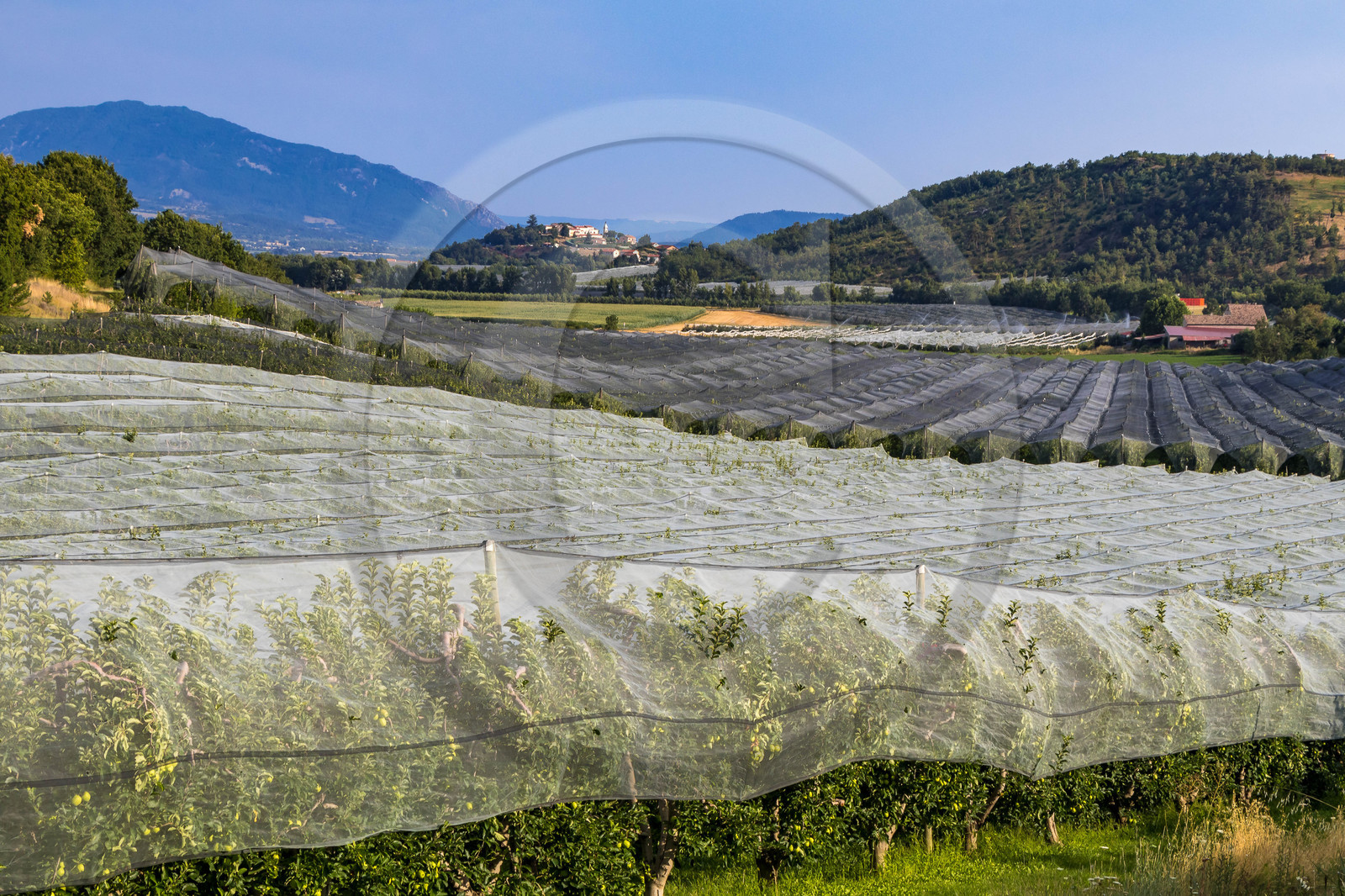| Description | Hautes-Alpes (05), vallée de la Durance, Pays du Buech, commune sur l'ancien tracé de la route Napoléon, Le Poët, arboriculture |