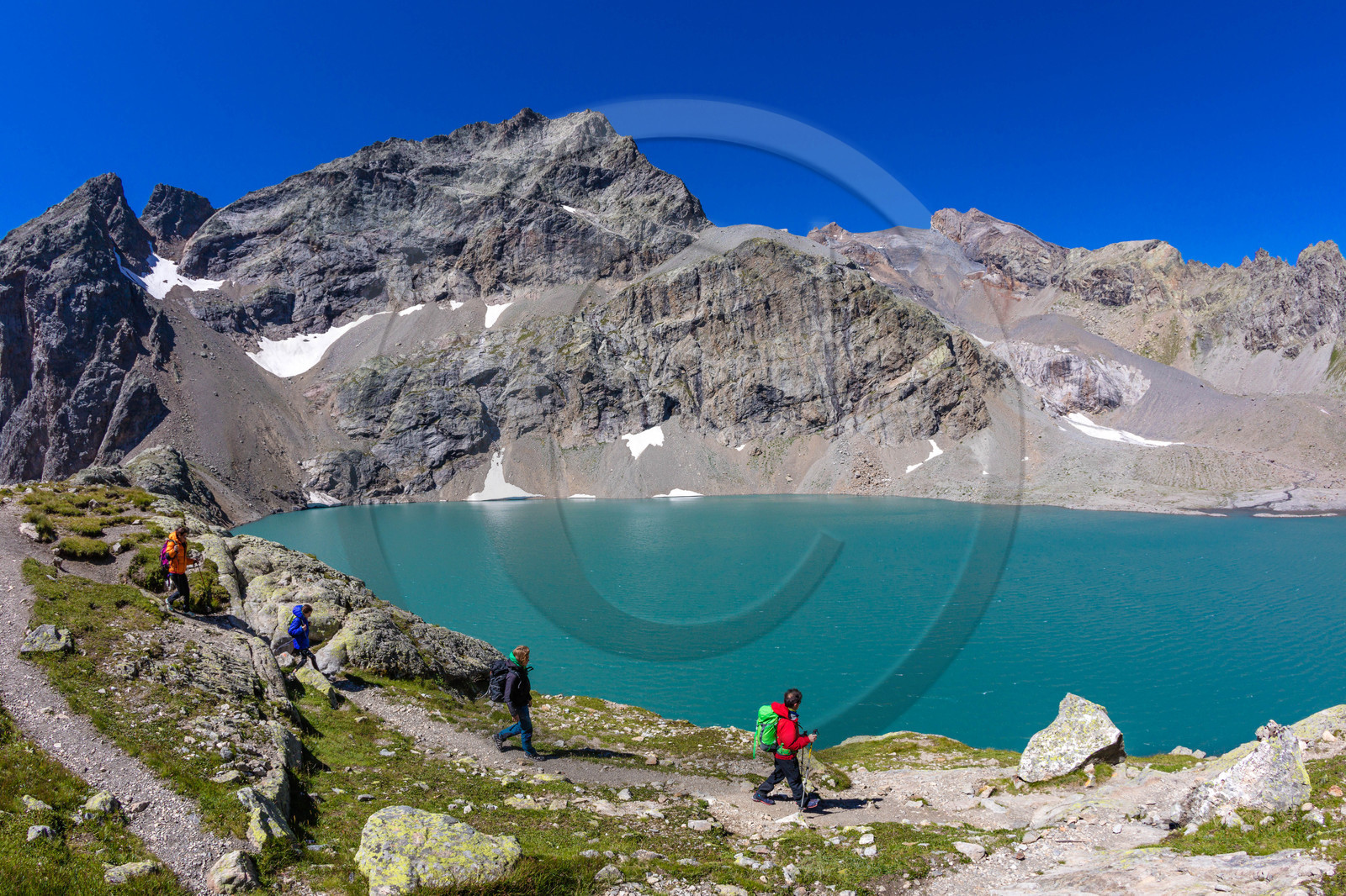 | Description | Hautes-Alpes (05), Pays des Ecrins, Parc national des Ecrins, Pelvoux-Vallouise, GR 54, Grand tour des Ecrins, Lac de L'Eychauda |