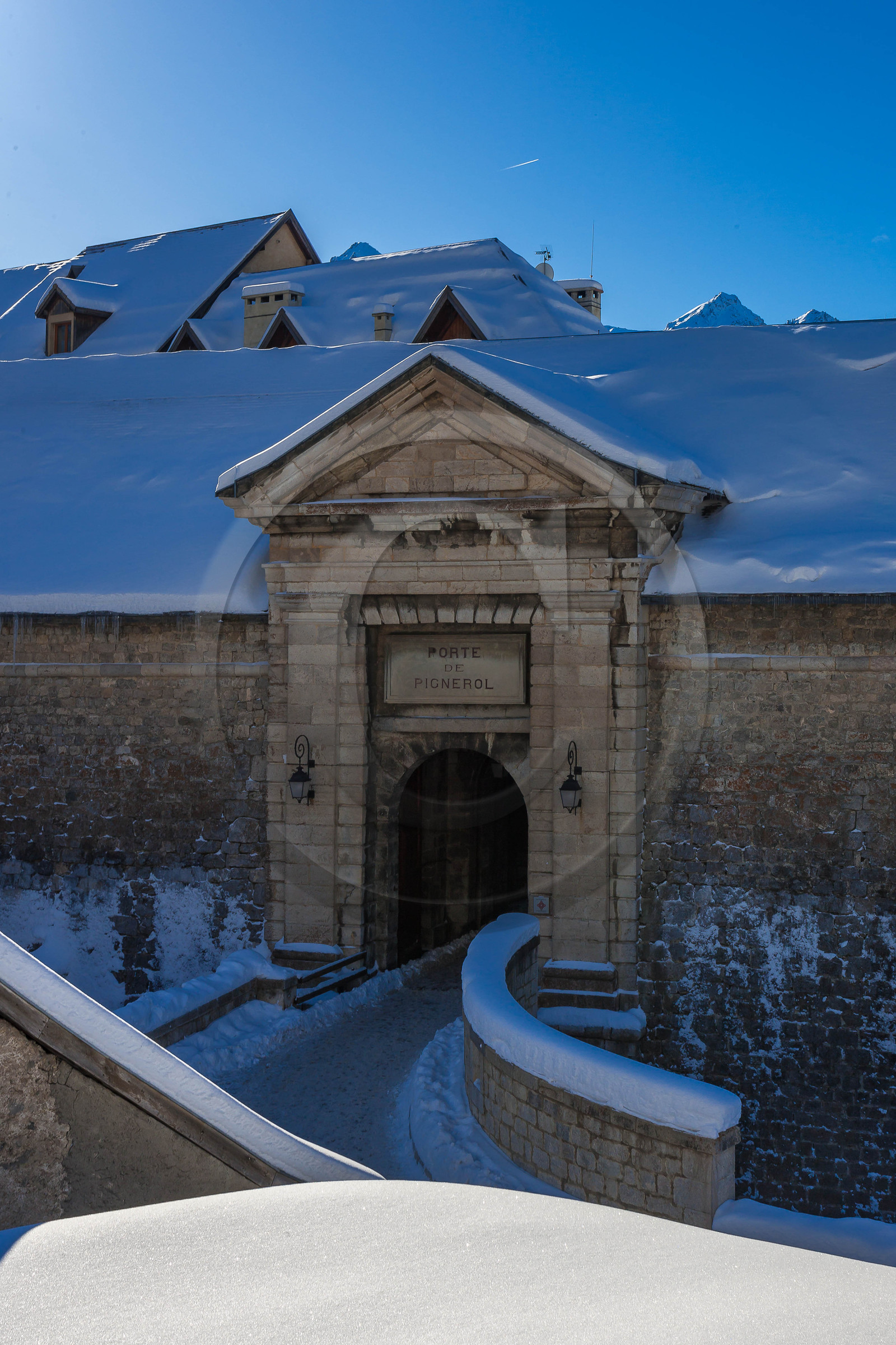 | Description | Hautes-Alpes (05), Serre Chevalier Vallée Briançon, 1350m d'altitude, ville d'Art et d'Histoire fortifiée par Vauban, les fortifications de Vauban sont inscrites sur la liste du patrimoine mondial de l'UNESCO, porte de Pignerol |