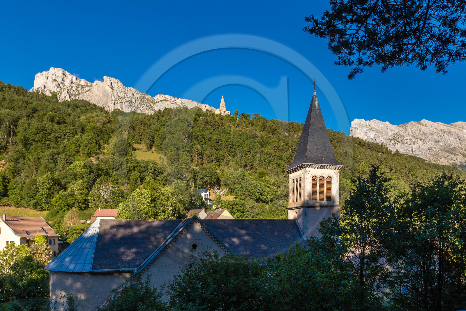 | Description | Hautes-Alpes (05), Buech-Dévoluy, massif du Dévoluy, Dévoluy, Saint-Disdier, le village, l'église et la chapelle des Gicons appelée Mère Église classée monument historique |