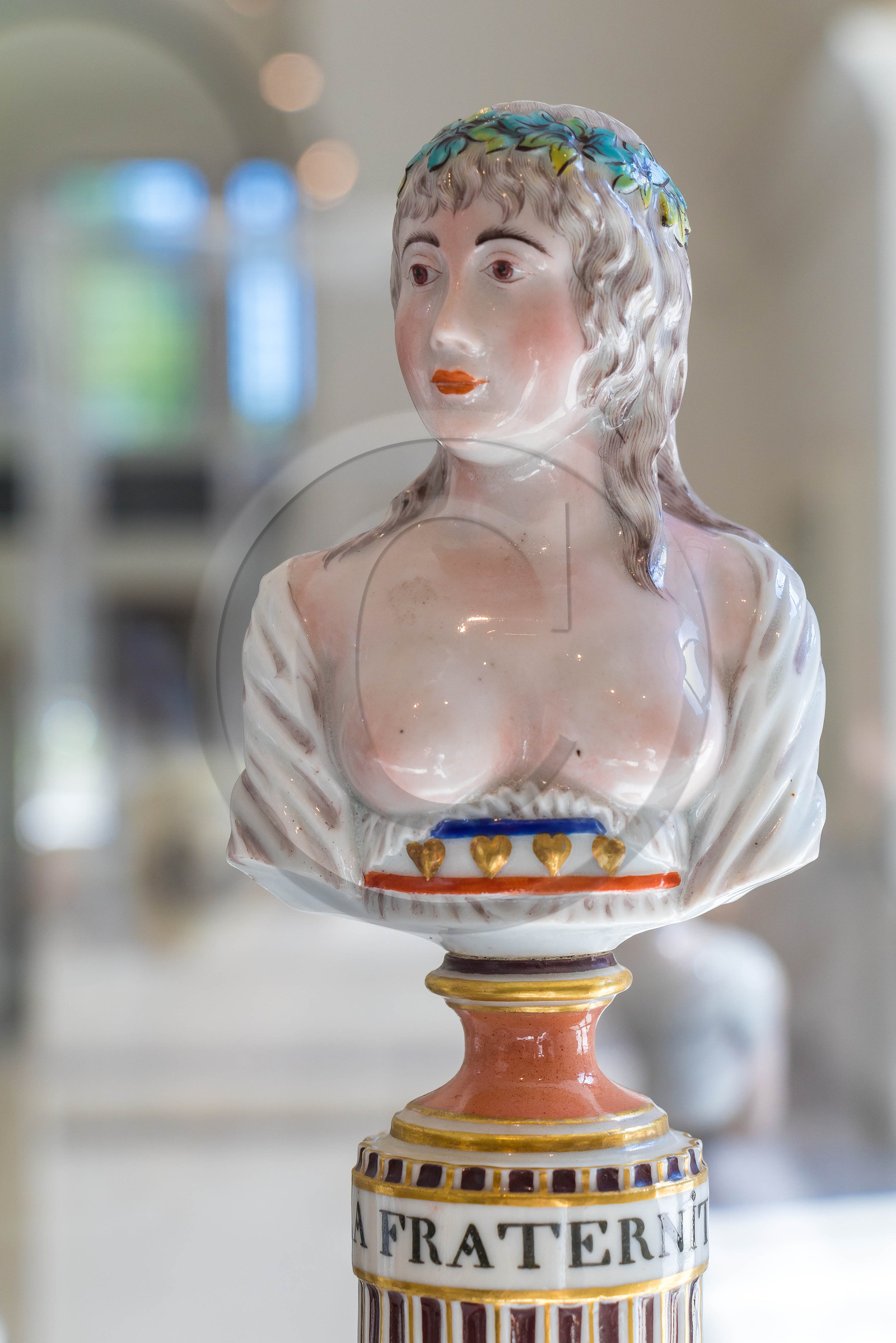 | Description | Isère (38), Vizille, Domaine départemental de Vizille, jardin remarquable de France, château Lesdiguières, musée de la Révolution française, porcelaine plychrome statue allégories révolutionnaires Liberté Egalité Fraternité |