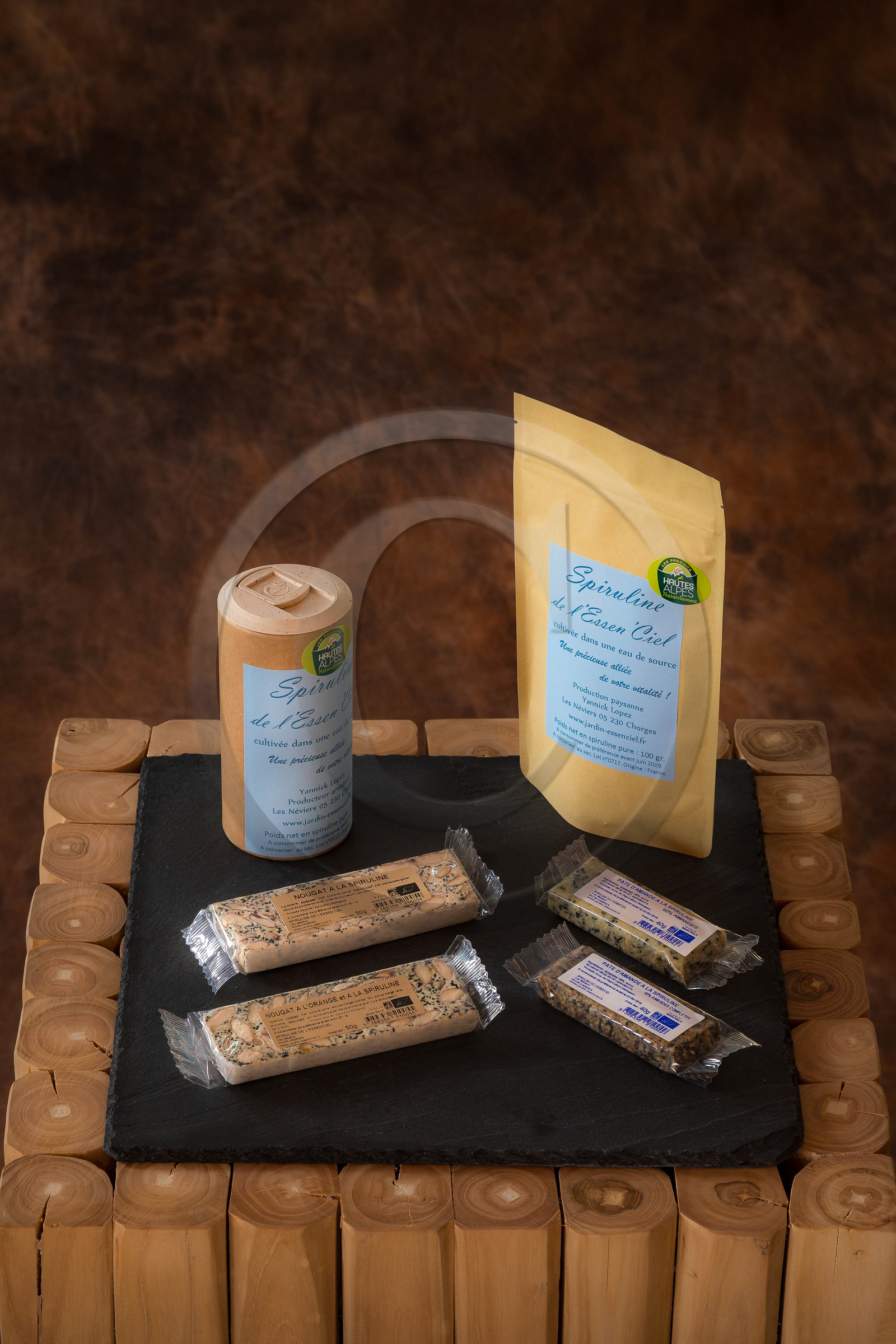 | Description | Hautes-Alpes (05), Pays de Serre-Ponçon, Chorges, Les Néviers, Spiruline de l'Essen'Ciel, Yannick Lopez producteur de spiruline, une micro-algue alimentaire, Pâte d’amande bio à la spiruline et Nougat bio nature ou à l’orange confite à la spiruline |