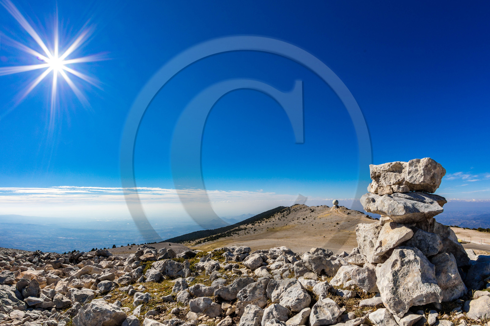 | Description | Vaucluse (84) , Mont Ventoux, surnommé le Géant de Provence ou le Mont Chauve, il est classé réserve de biosphère par l'UNESCO et site Natura 2000, cairn |