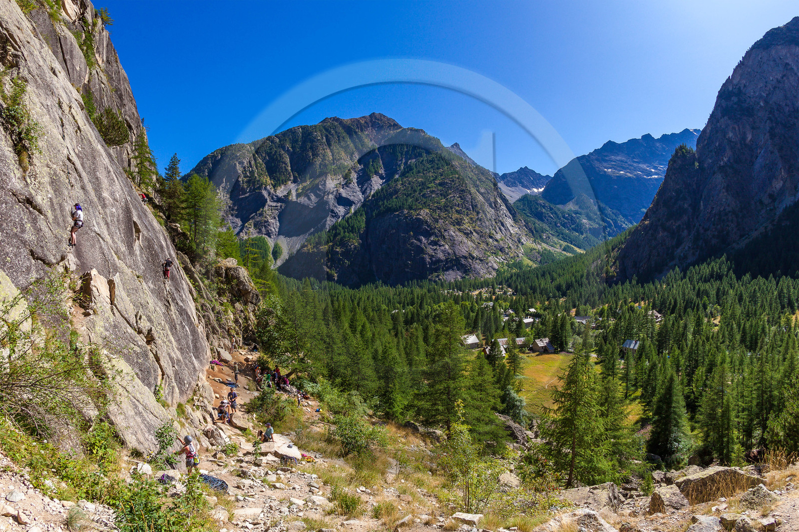 | Description | Hautes-Alpes (05), Pays des Ecrins, Parc national des Ecrins, Pelvoux, Vallouise, Ailefroide, blocs et voies d'escalade |