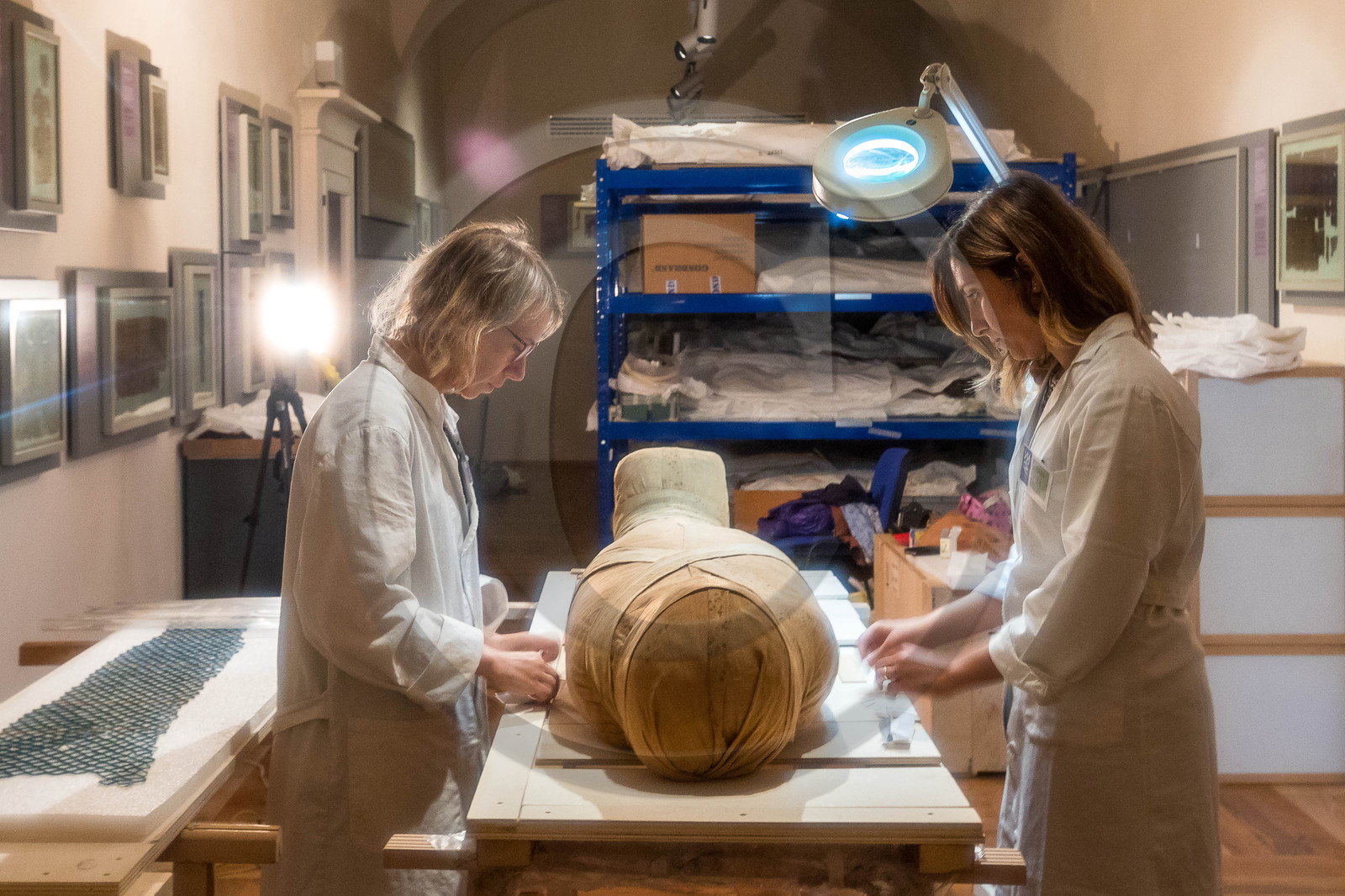 | Description | Italie, Piémont, Turin, Musée égyptologique de Turin, musée des antiquités égyptiennes (Fondazione museo delle antichità egizie di Torino), Restauration et conservation d'une momie |