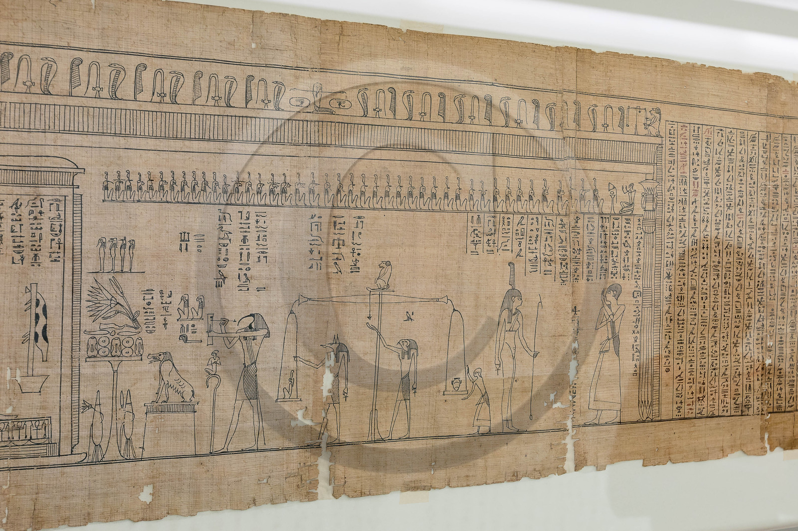 | Description | Italie, Piémont, Turin, Musée égyptologique de Turin, musée des antiquités égyptiennes (Fondazione museo delle antichità egizie di Torino), Le Papyrus de Iouefânkh (IVe siècle av. J.-C.), avec plus de 19 mètres, c'est l'un des livres des morts les plus longs au monde |