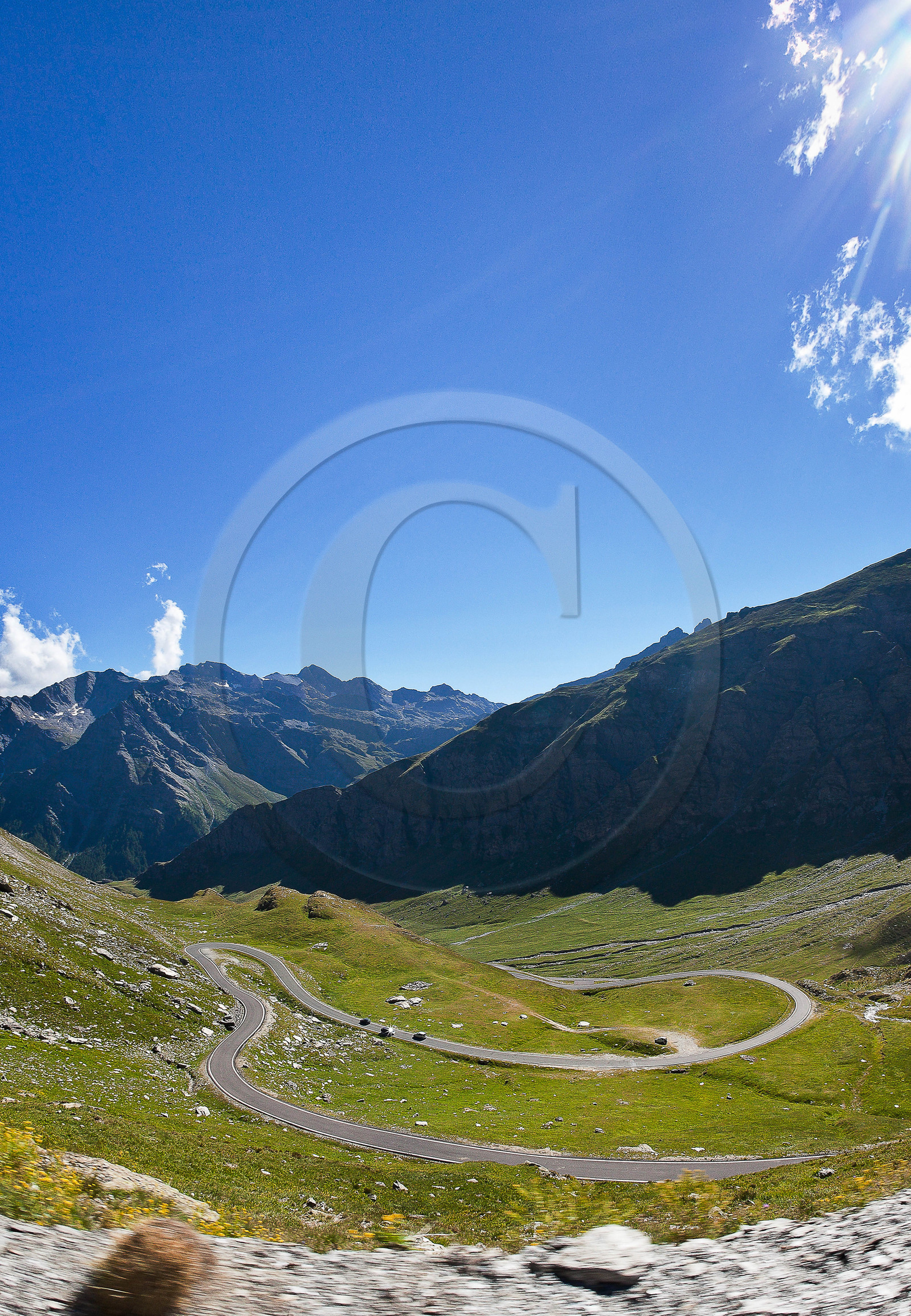| Description | Hautes-Alpes (05), Parc naturel régional du Queyras, Col Agnel, 2 744 mètres d'altitude, col frontière entre l'Italie et la France, col emprunté par le Tour de France cycliste |