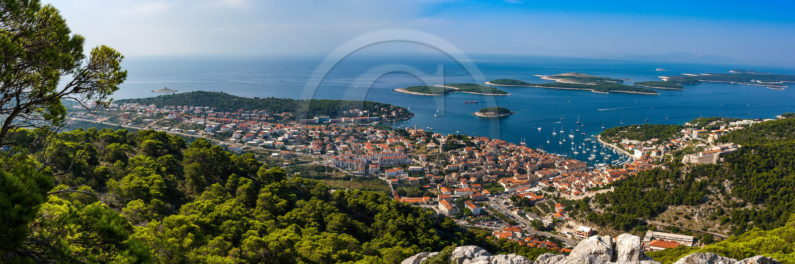 | Description | Croatie, Mer Adriatique, Ile de Hvar, Hvar, le port, les Iles Infernales |