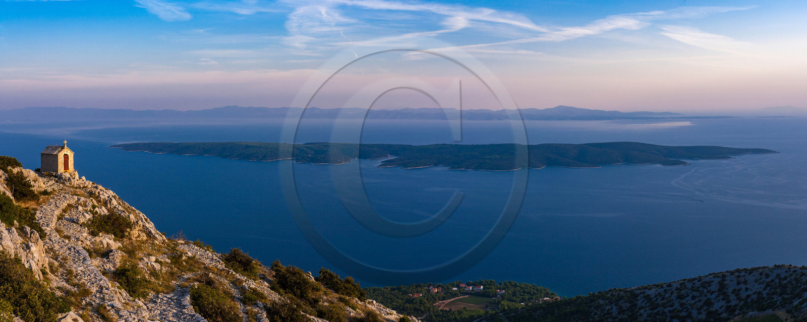 | Description | Croatie, Mer Adriatique, Ile de Hvar, du plus haut sommet de l'ile, chapelle St. Nikola |