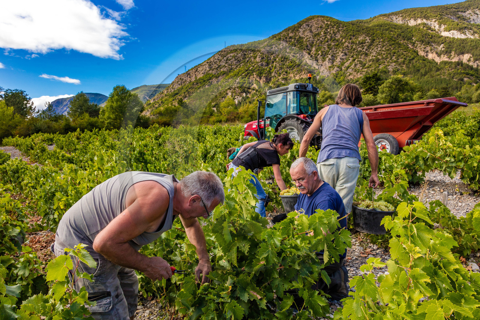 | Description | Hautes-Alpes (05), vallée de la Durance, Serre-Ponçon Val d'Avance, Théüs, Vignoble de Théüs, Domaine Allemand, les vendanges |