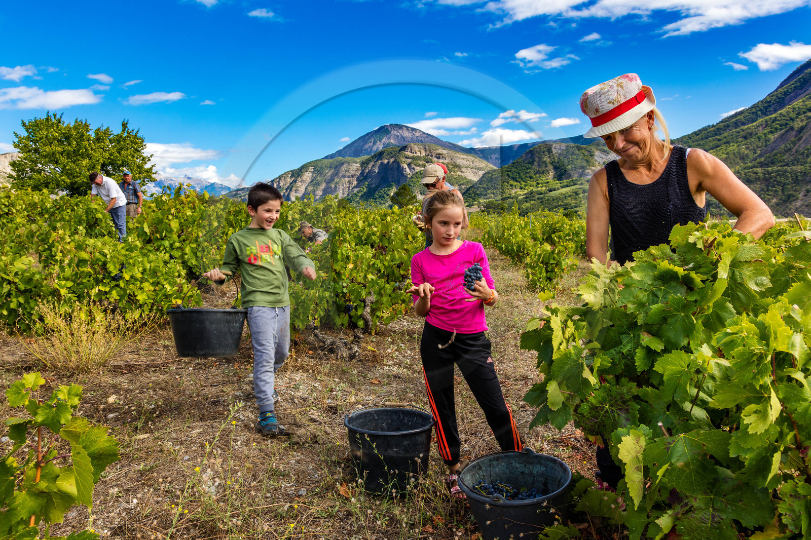 | Description | Hautes-Alpes (05), vallée de la Durance, Serre-Ponçon Val d'Avance, Théüs, Vignoble de Théüs, Domaine Allemand, les vendanges |