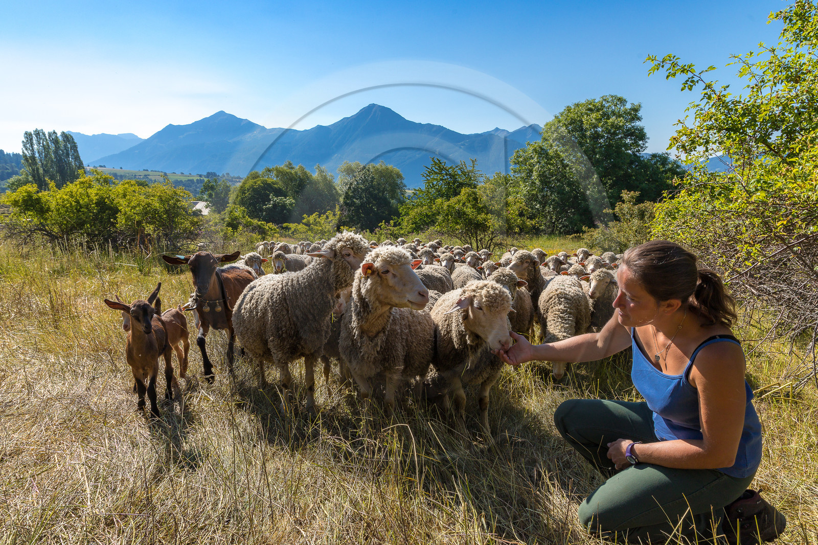 | Description | Hautes-Alpes (05), Parc national des Ecrins, Vallée du Champsaur, Saint-Michel de Chaillol, Gaec du Caîre, ferme de Chaillolet, élevage, production viande ovine Label Rouge, Marque Esprit Parc national, Florence Martin |