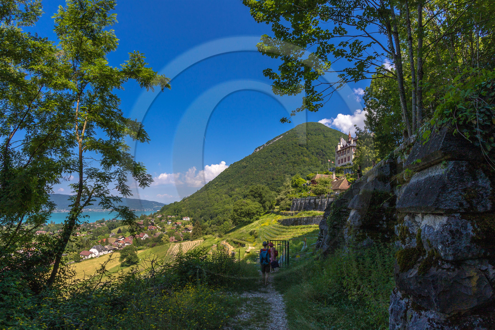 | Description | Haute-Savoie (74), Lac d'Annecy, Menthon-Saint-Bernard, Château de Menthon et les vignes |