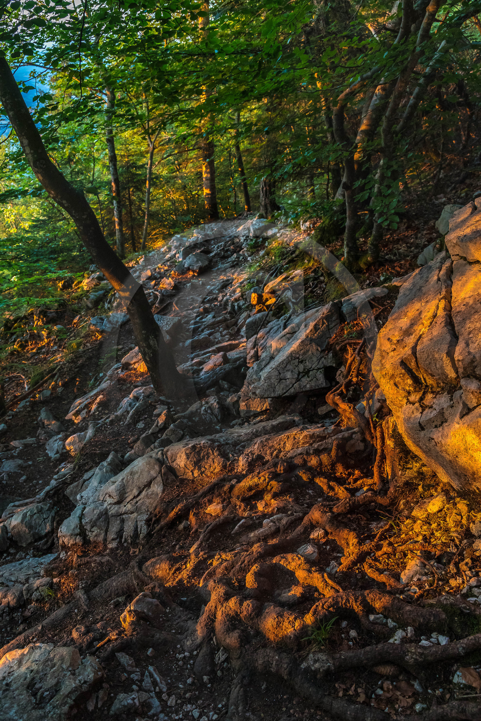 | Description | Haute-Savoie (74), Lac d'Annecy, Annecy, sur le sentier du Mont Veyrier, sentier forestier du col des Sauts |