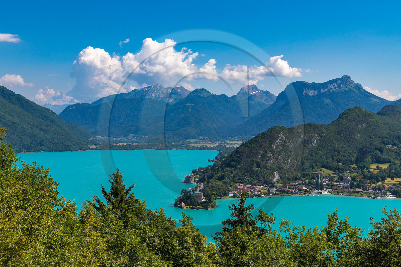 | Description | Haute-Savoie (74), lac d'Annecy, Talloire, Réserve naturelle du Roc de Chère, belvédère avec vue sur le château de Duingt |